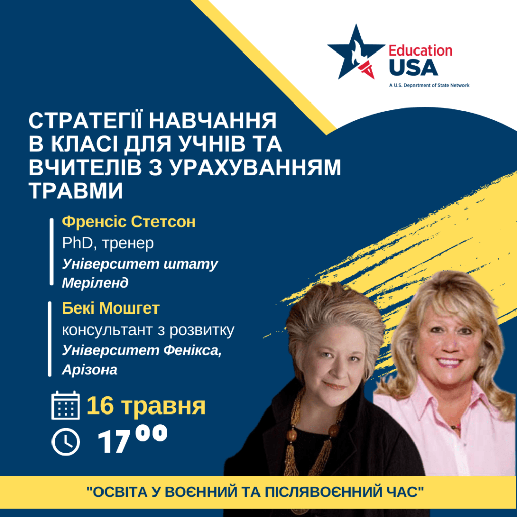 - навчальні характеристики травмованих студентів і стратегії для досягнення емоційної рівноваги, відчуття безпеки та довіри;