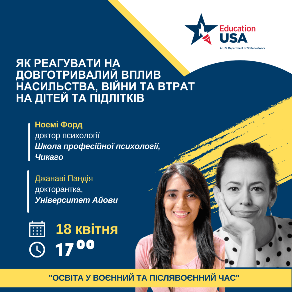 Приєднуйтеся до вебінару Ноемі Форд, доктора психології Школи професійної психології, Чикаго і Джанаві Пандіа, докторантки Університету Айова та дізнавайтеся про те, як вчителі можуть допомогти учням відновитися, а також як вони можуть піклуватися про себе.