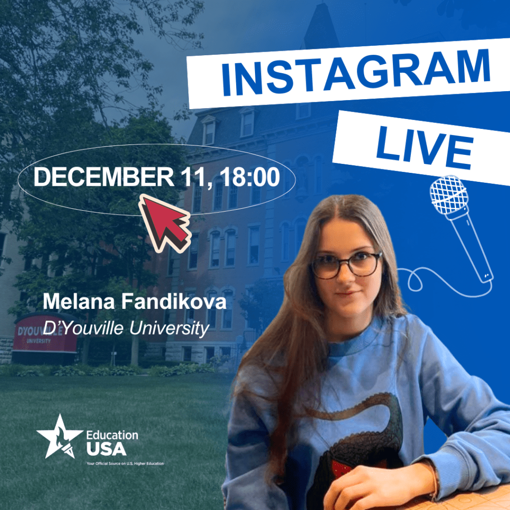 Мелана навчається на бізнес-програмі в D’Youville University з повним фінансуванням і є випускницею програми CCC від EducationUSA. Вона поділиться своїм шляхом до вступу, досвідом участі в CCC та цінними порадами щодо отримання стипендій для навчання в США.