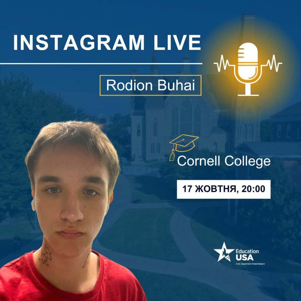 Родіон – учасник програми SAM від EducationUSA, і під час ефіру він поділиться своїм досвідом участі в програмі, розповість, що таке double major, та поділиться враженнями від навчання в Cornell College.