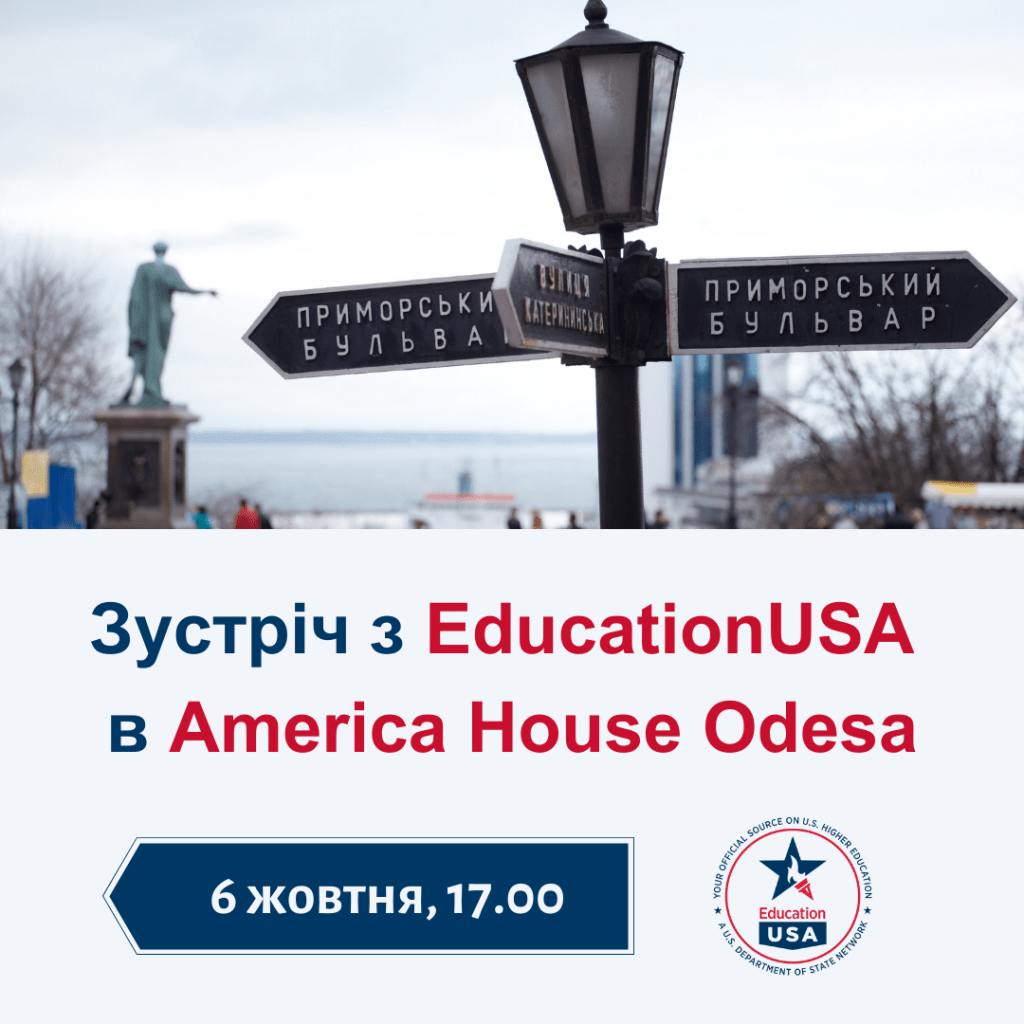 Запрошуємо всіх бажаючих на офлайн-зустріч в America House Odesa, де ви дізнаєтесь про особливості вищої освіти в США! Ви зможете поставити питання координаторці мережі EducationUSA про можливості академічного досвіду для українців в Сполучених Штатах.